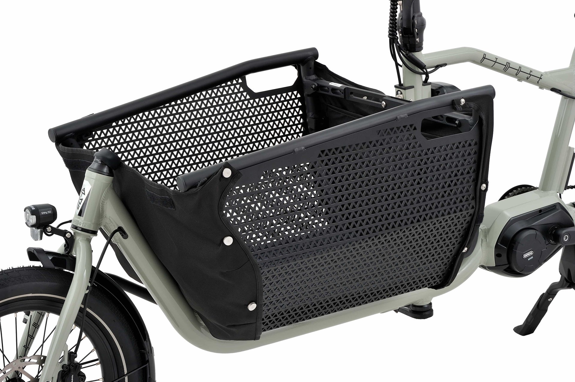 Vorderkorb: klappbar, Breite entfaltet 620 mm, gefaltet 365 mm, Tragfähigkeit bis 35 kg; kann zusätzliches Zubehör wie mobile Stände, Kindersitz oder Picknicktisch aufnehmen